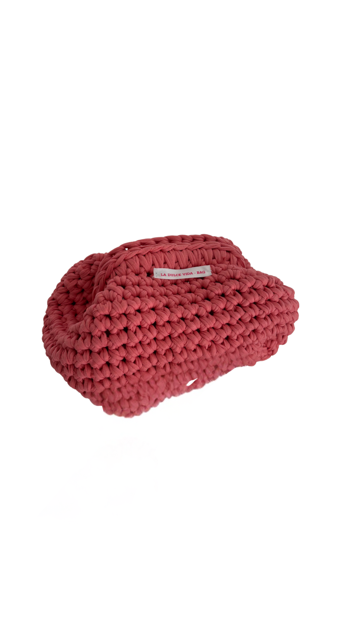 Confectionnée en fil de coton recyclé au ton rose corail vibrant, cette pochette se distingue par sa texture moelleuse et son allure contemporaine. Sa forme souple et son tissage épais en font un modèle aussi pratique que stylé, idéal pour emporter tes essentiels du quotidien ou pour illuminer une tenue de soirée.